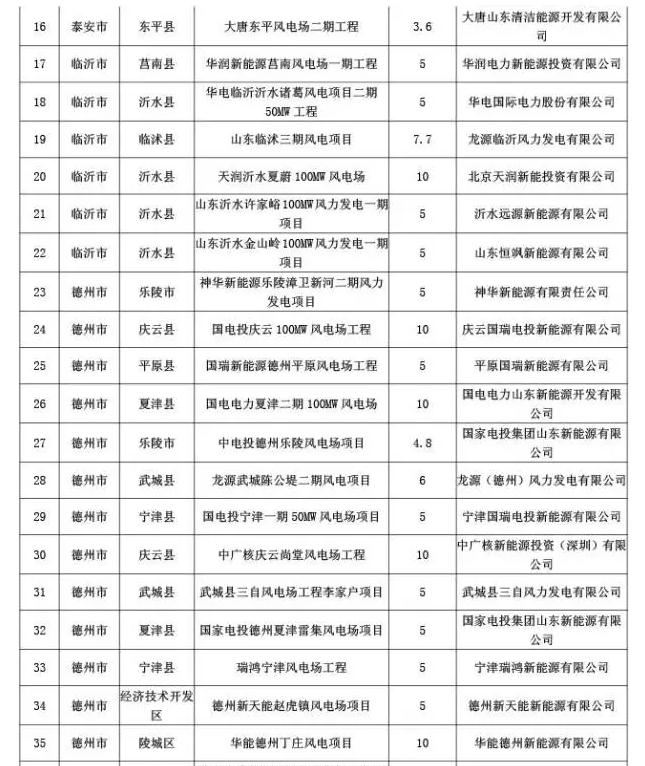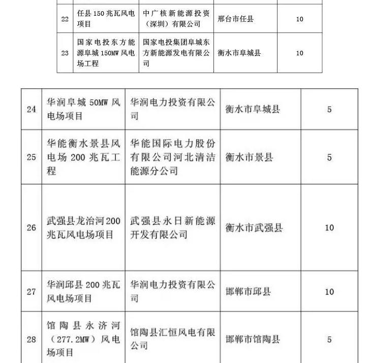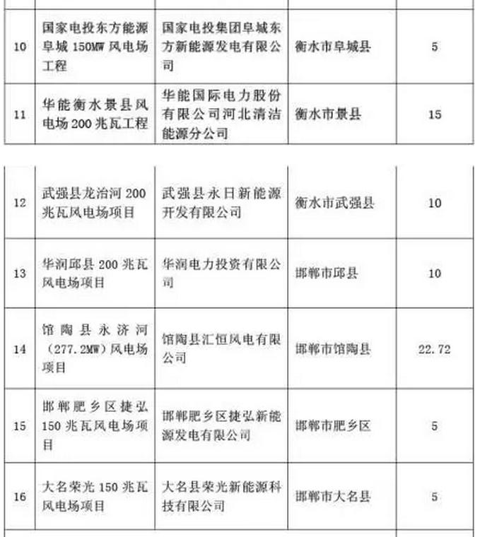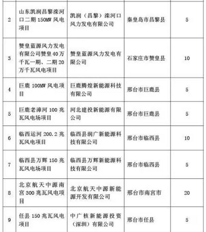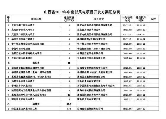 山西省晋北三市2018年底建成投运风电开发建设方案汇总表