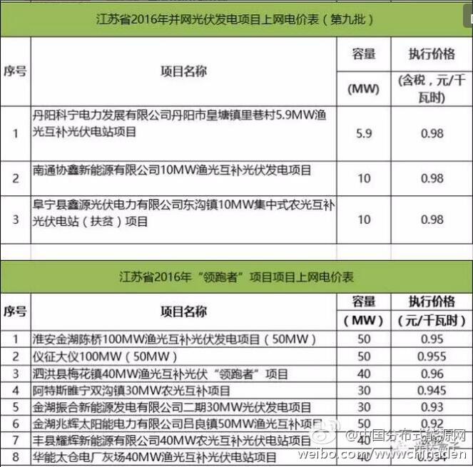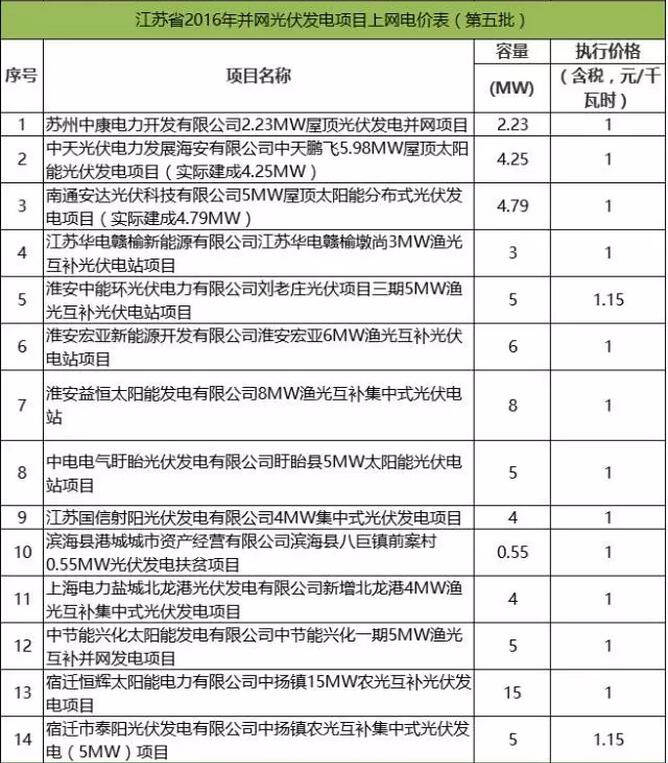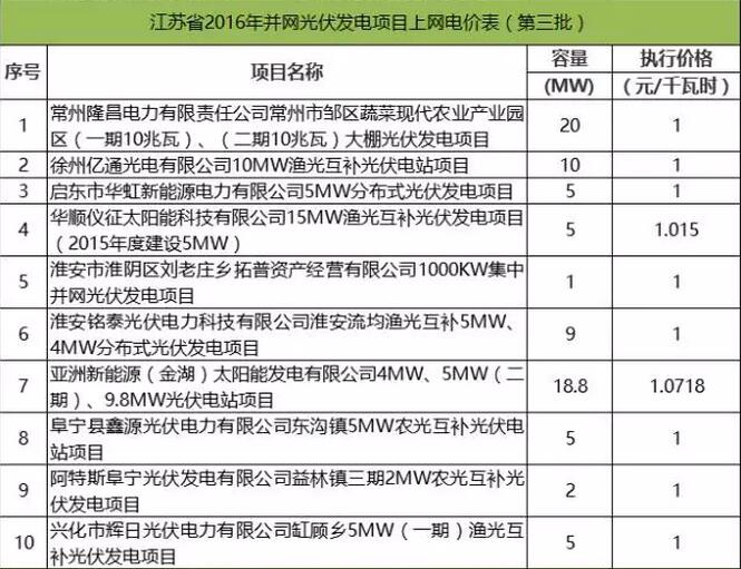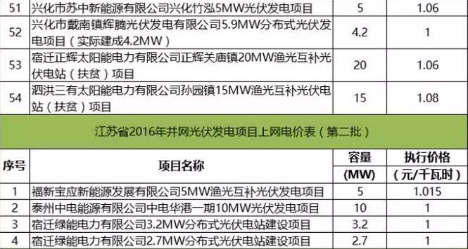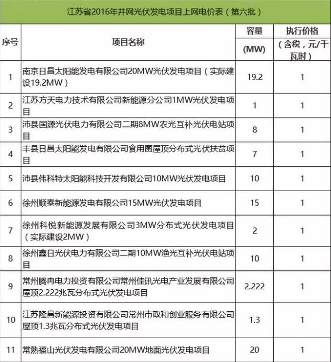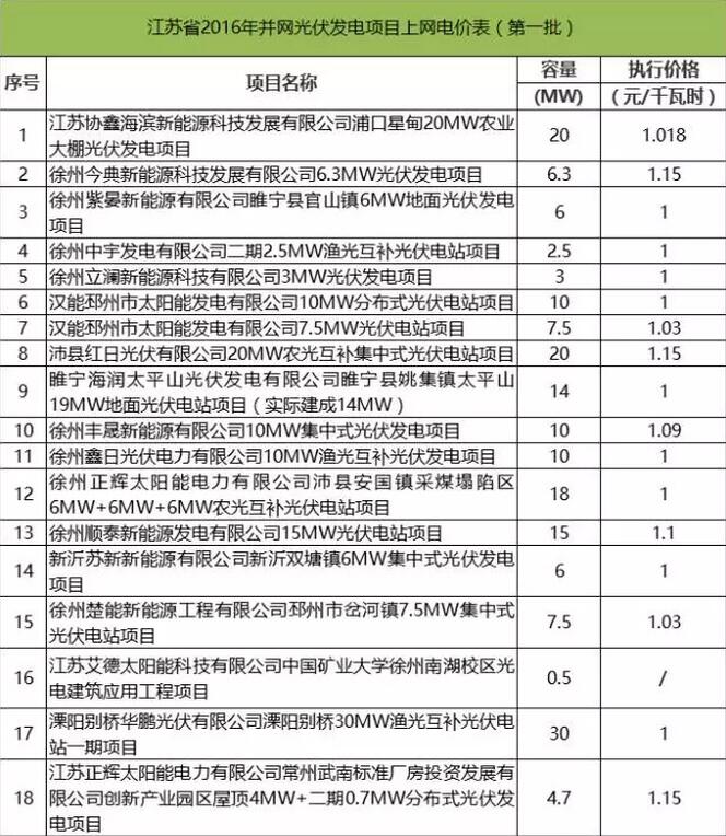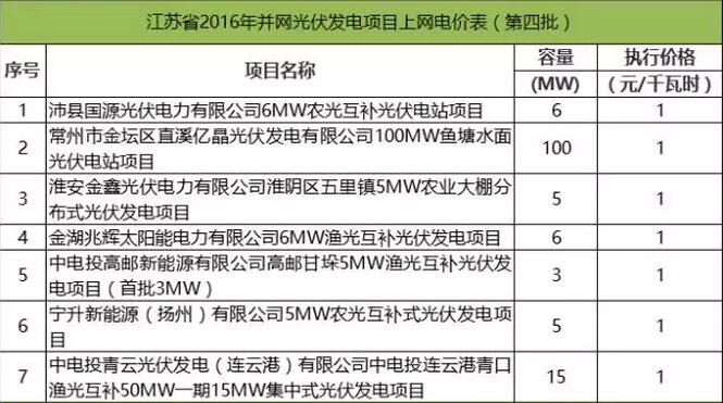 江苏省2016全年光伏电站共并网1.6GW(附详细项目名称及电价)
