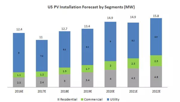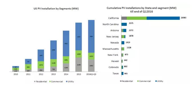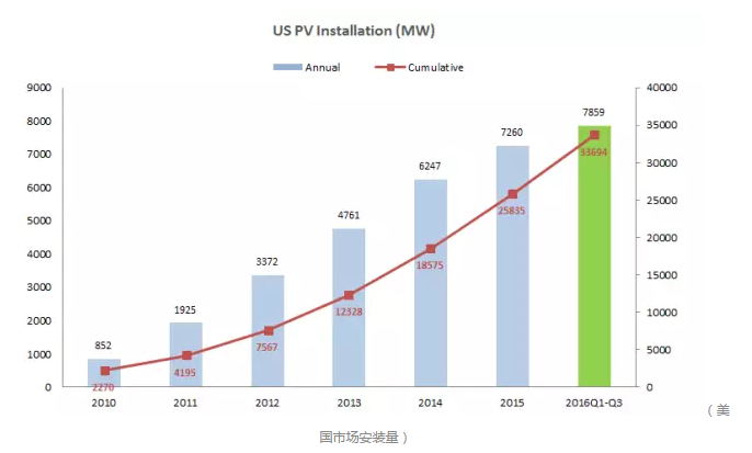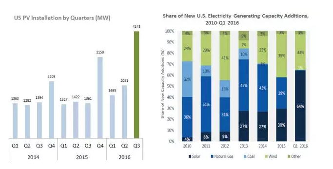 ▲2016年第三季度是美国光伏市场迎来了前虽未有的爆发性增长