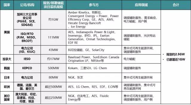 表4:全球储能装机规划量及应用领域(2015-2016)