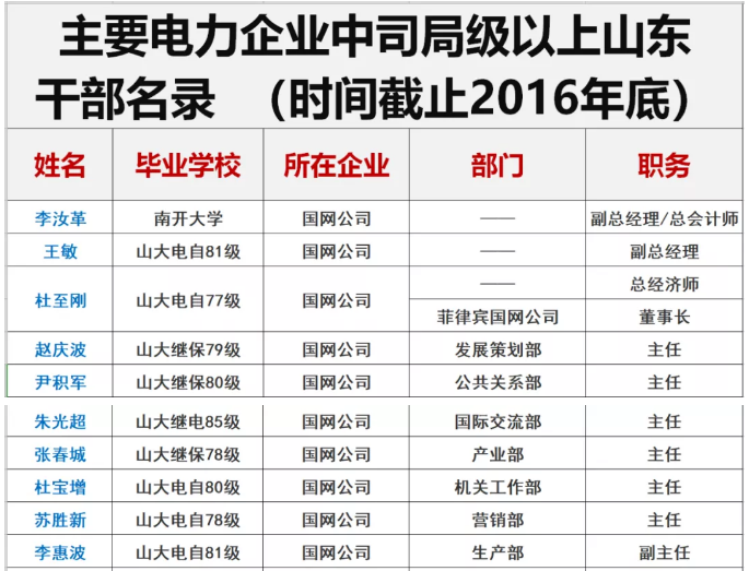 2017年,包括笔者在内的一些媒体同行曾收到了一份电力领域山东籍企业高管的统计表格,整体而言,可以从以下几个方面进行观察(至今不少人员职位已经发生变动,甚至有有人“落马”):