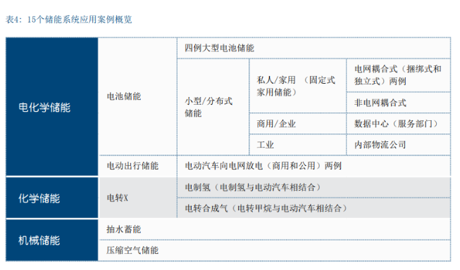在本报告第四章中,我们将选择15个储能系统的应用案 例(其中大部分是德国案例)进行详细分析。表1展示 了入选案例分属的类别:
