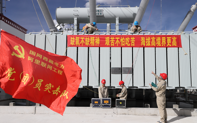 据悉,目前阿里联网工程已完成3座变电站(2座500千伏站、1座220千伏站)及1079公里线路(总长1689公里)的带电调试。后续,全体建设者将继续发扬"缺氧不缺精神、艰苦不怕吃苦、海拔高境界更高”的老西藏精神,安全有序完成剩余3座变电站(220千伏仲巴变、霍尔变、巴尔变)及线路的启动带电工作。践行“人民电业为人民”初心使命,助力西藏脱贫攻坚决战决胜,不向困难退半步,只向胜利添精彩。