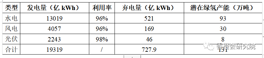 表2.1 我国可再生能源绿氢潜力(基于2019年)