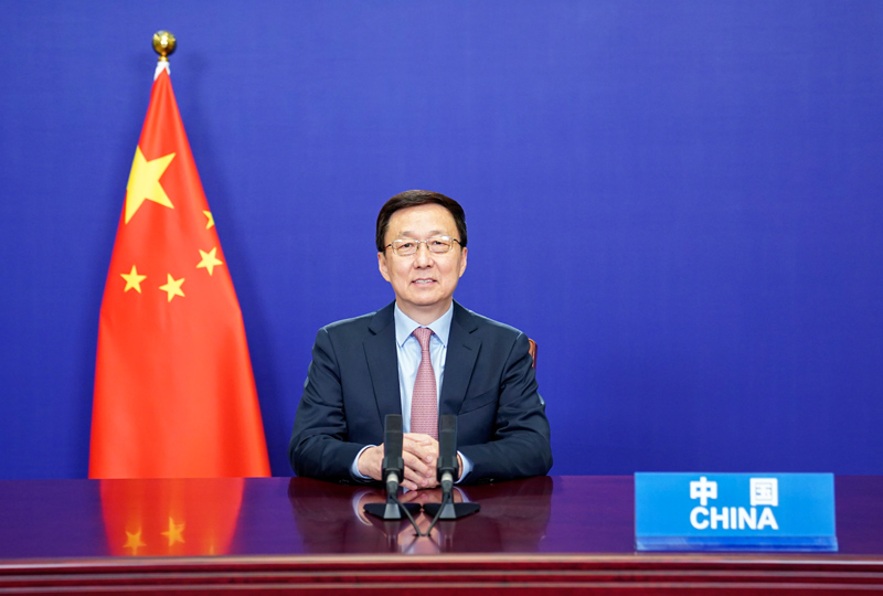 1月25日,中共中央政治局常委、国务院副总理韩正在北京以视频方式出席首届气候适应峰会并发表致辞。新华社记者 殷博古 摄