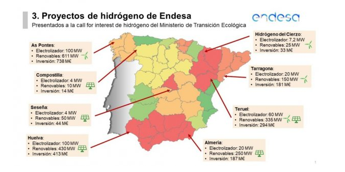 Endesa已经向西班牙生态过渡部提交了一份意向书,希望在西班牙半岛和半岛外地区开发多达23个与绿色氢有关的项目。