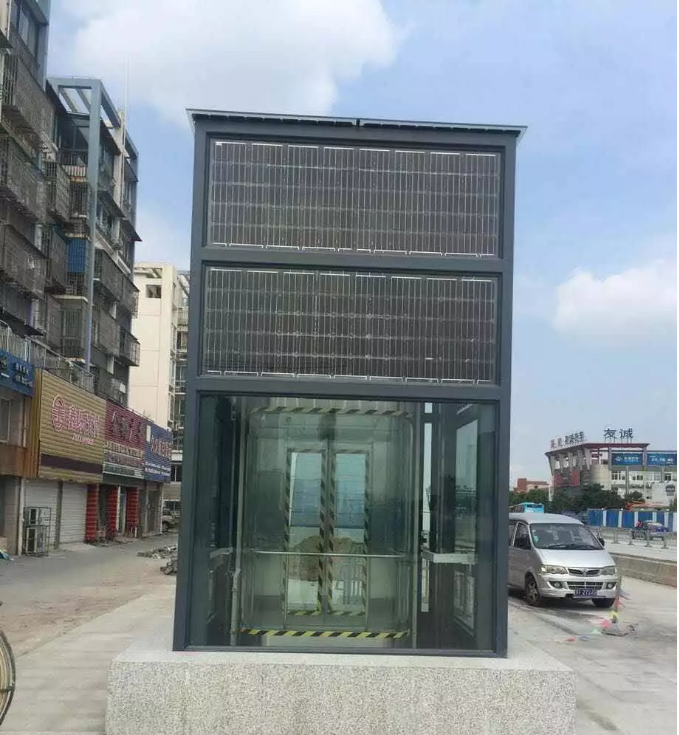 太阳能玻璃幕墙通过采集光能,为电梯供电,从而带动电梯内的照明和换气系統等用电设备。全玻光伏组件采用低透光率设计,为电梯提供更多的电量,同时光伏组件整体与电梯框架格调一致,使整座电梯美丽大方,充分体现了“绿色、环保、节能”的主题。