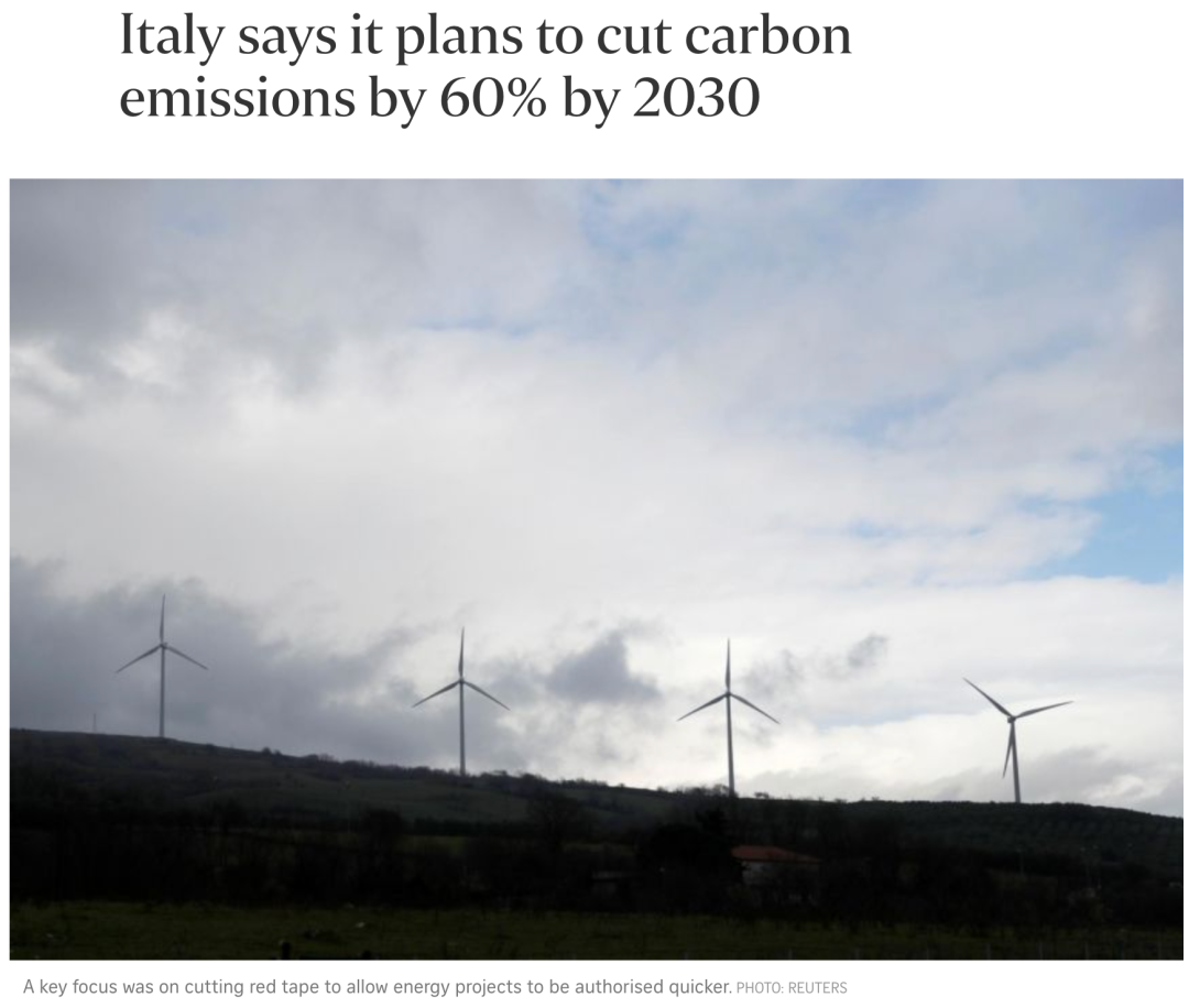 欧盟最近设定了到2030年减排55%的目标以后(大大提高了原有的40%的目标),意大利新任总理马里奥·德拉吉(Mario Draghi)将气候变化作为其施政的核心,成立了一个新的能源转型部,负责国家的绿色发展。