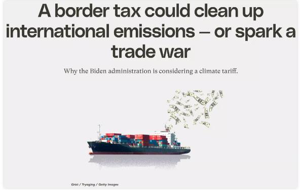 3月17日,Grist.org网站发布文章《碳边境税可能清除国际排放,也可能点燃贸易战》(A border tax could clean up international emissions — or spark a trade war),副标题为为什么拜登政府酝酿推出气候关税(Why the Biden administration is considering a climate tariff),作者:Shannon Osaka。文章聚焦美国新总统拜登的气候政策及可能的碳边境税及对未来国际贸易产生的可能影响。