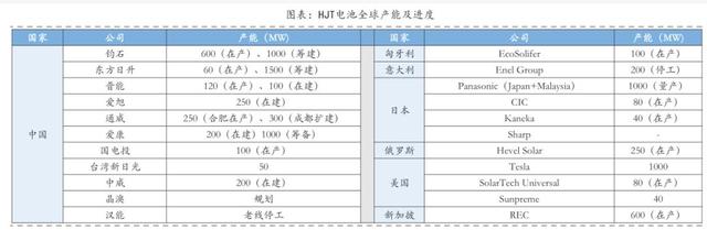 海外方面,日本松下由于2014年收购三洋,获取HJT技术具有先发优势,其在日本和马来西亚的HJT产线已经实现量产,合计产能1GW。