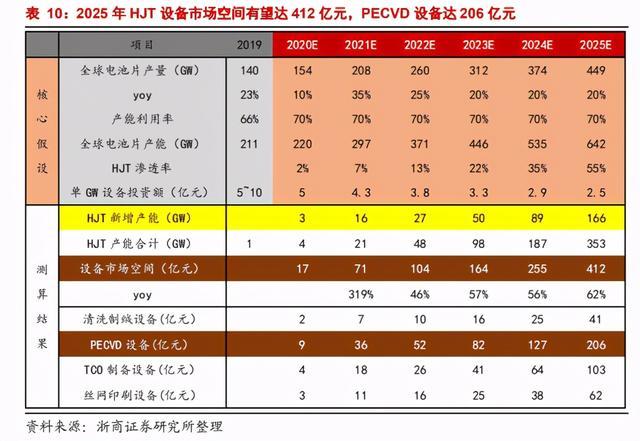 对2020-2025年HJT市场空间进行测算,假设: