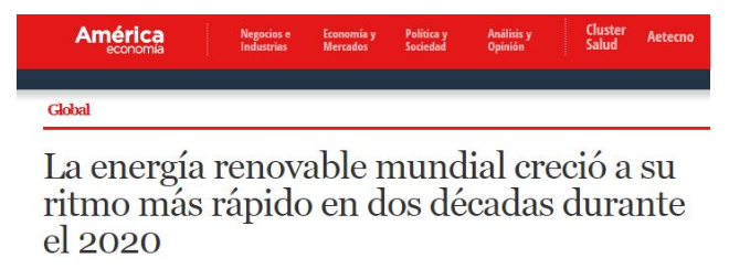 智利《美洲经济杂志》网站援引国际能源署(IEA)5月11日发布的《2021年可再生能源市场报告》中的内容指出,2020年全球新增可再生能源装机容量近280吉瓦(国际在线注:吉瓦是功率单位。1吉瓦=10亿瓦),比前一年增长45%以上,创下自1999年以来的最大年度增量,而这一领域的快速发展离不开中国的引领。