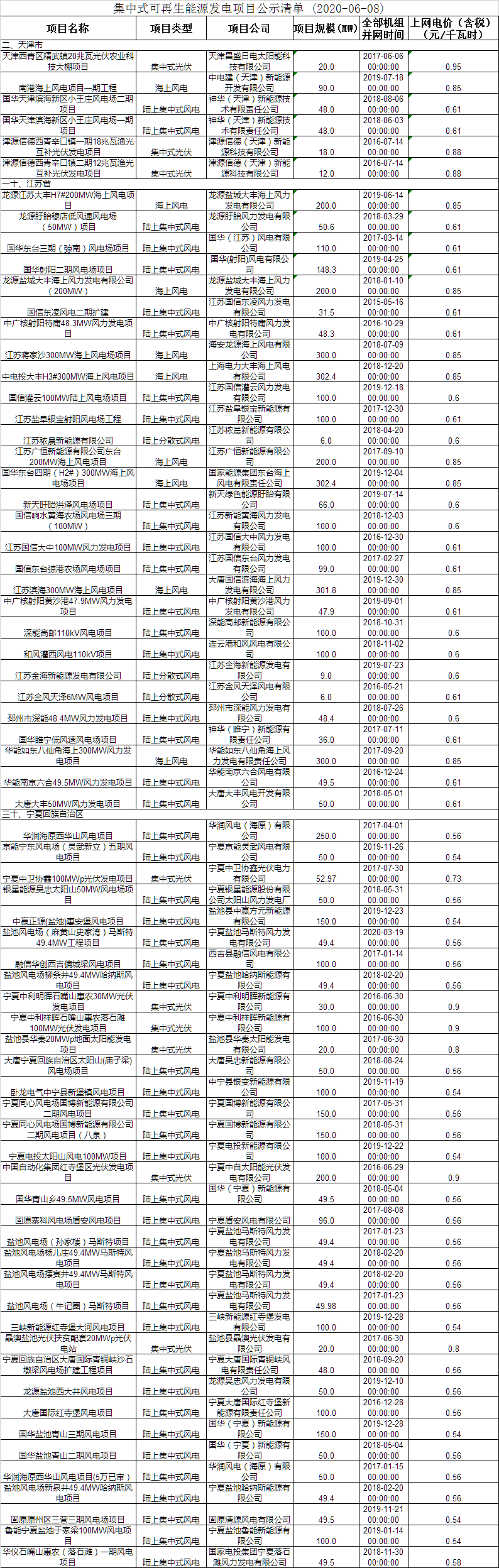 按照《财政部 国家发展改革委 国家能源局关于促进非水可再生能源发电健康发展的若干意见》(财建〔2020〕4号)、《财政部 国家发展改革委 国家能源局关于印发<可再生能源电价附加资金管理办法>的通知》(财建〔2020〕5号)、《财政部办公厅关于开展可再生能源发电补贴项目清单审核有关工作的通知》(财办建〔2020〕6号)等文件要求,经电网企业初审、省级能源主管部门复审、国家可再生能源信息管理中心复核,现将国家电网有限公司经营区已通过复核的项目予以公示,后续通过复核的项目将在新能源云平台上滚动公示。