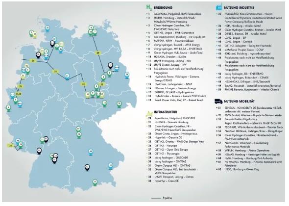 德国政府支持的这些氢能项目属于欧洲项目(Important Project of Common European Interest, IPCEI)的一部分,与22个欧洲伙伴国家共同推动,各国的氢能项目将相互联网,使所有国家都能从中受益,共同建立欧洲氢经济。