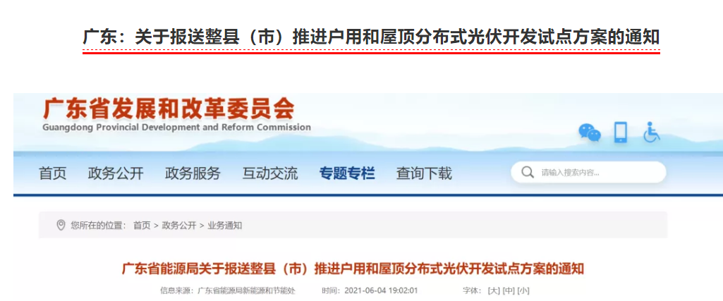 广东:关于报送整县(市)推进户用和屋顶分布式光伏开发试点方案的通知