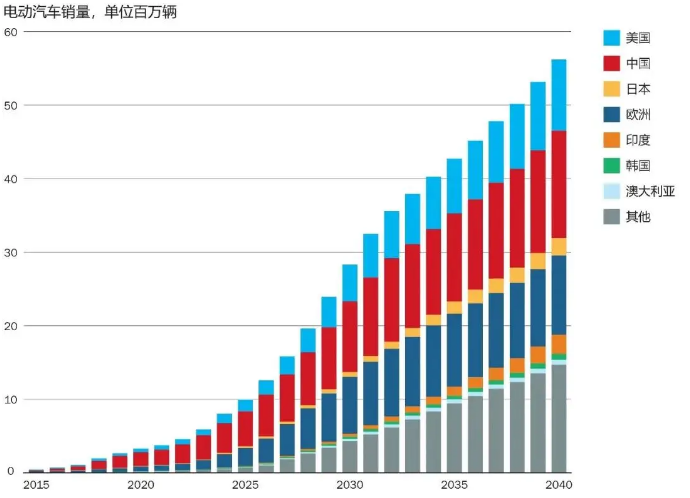 图1. 乘用纯电动车(EV)和插电式混合动力电动汽车( PHEV )年销量。来源:彭博社,电动汽车展望2019。