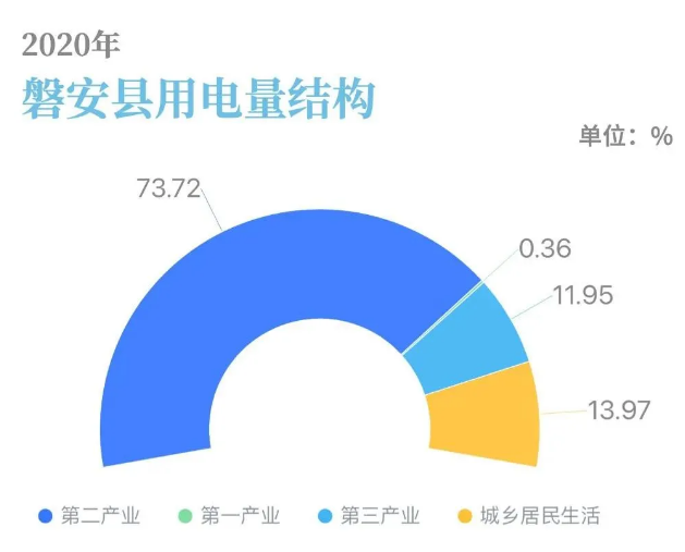 另外,磐安县的用电结构也具有普遍性。2020年浙江第一产业、第二产业、第三产业、城乡居民生活累计用电量占比分别为0.43%、70.3%、15.14%、14.22%,同一时期,2020年磐安县第一产业、第二产业、第三产业、城乡居民生活累计用电量占比分别0.36%、73.72%、11.95%、13.97%,磐安县用电结构与全省用电结构近乎相同,具备可复制条件。以“零碳县”创建为目标,坚持生态化、特色化、融合化发展,加快特色产业链培育、生态产业平台建设、产业创新能力提升,将为浙江高质量发展建设共同富裕示范区提供可复制、可推广的磐安样板。