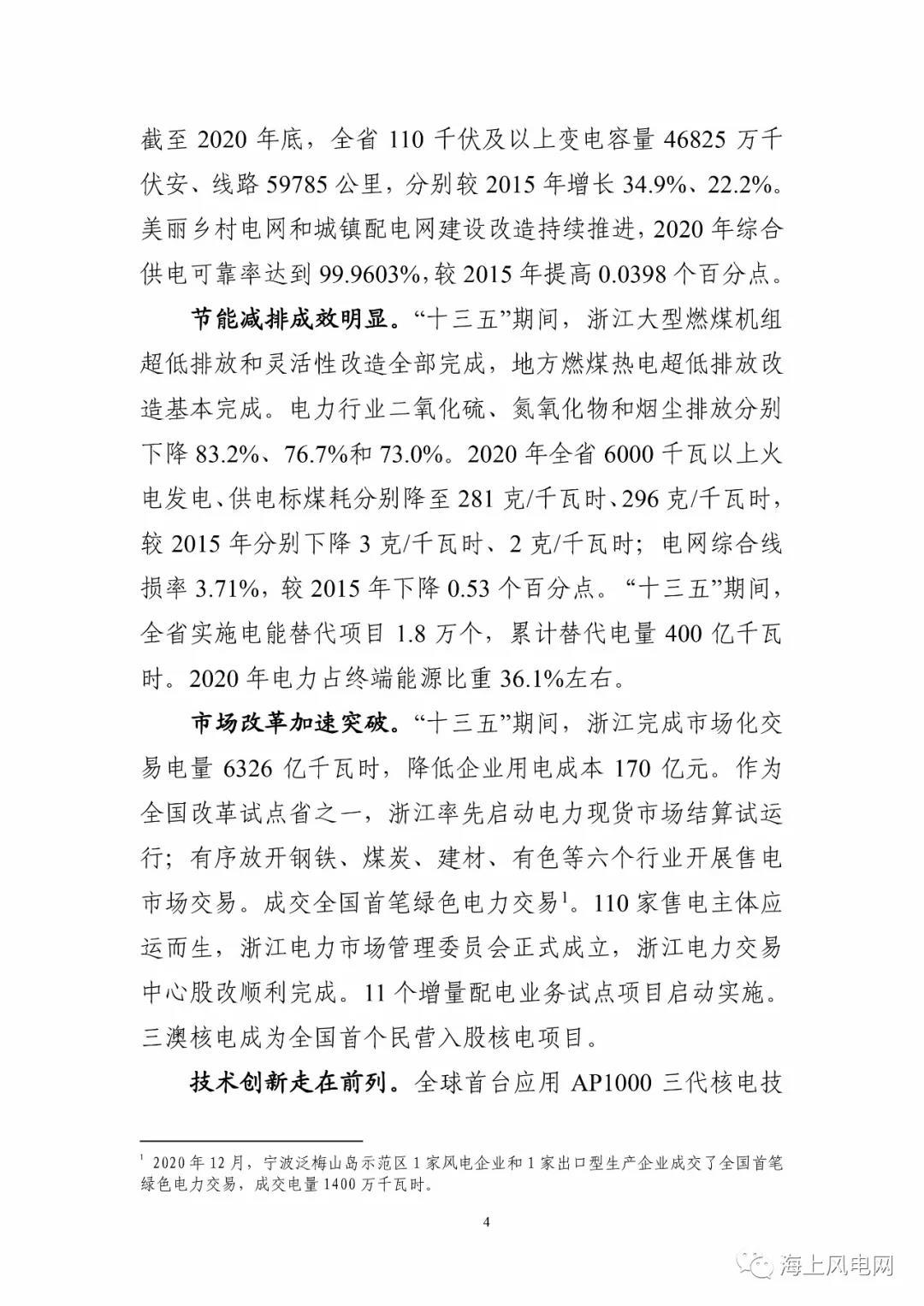 浙江省“十四五”规划:打造3个以上百万千瓦级海上风电基地
