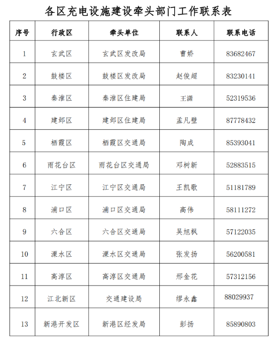 3、各区充电设施建设牵头部门工作联系表