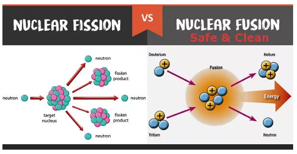 目前世界上的核电站都利用核裂变(Nuclear fission)产生的热量来制造能源。然而,人类最终的梦想是通过核聚变(Nuclear fusion)的过程来创造能源,但由于工程上的挑战,核聚变目前还无法实现。