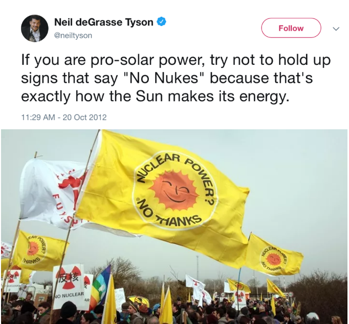 总之,虽然我们目前还没有可行的核聚变工厂,但核聚变已经是地球上产生的大部分能量和电能的来源。如果你是支持太阳能的,那就不要高举“反核”旗帜,因为这正是太阳产生能量的方式!