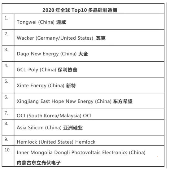 虽然全球市场对多晶硅的需求正在猛增,但是多晶硅制造商面临的竞争也在加剧。Bernreuter根据2020年实际多晶硅产出列出的排名中,中国厂商占据了前十中的七席,未来这一形势还会加剧。OCI能否在新一轮的价格涨跌中顺利达成扩产计划,并在竞争中稳定发展还有待观察。