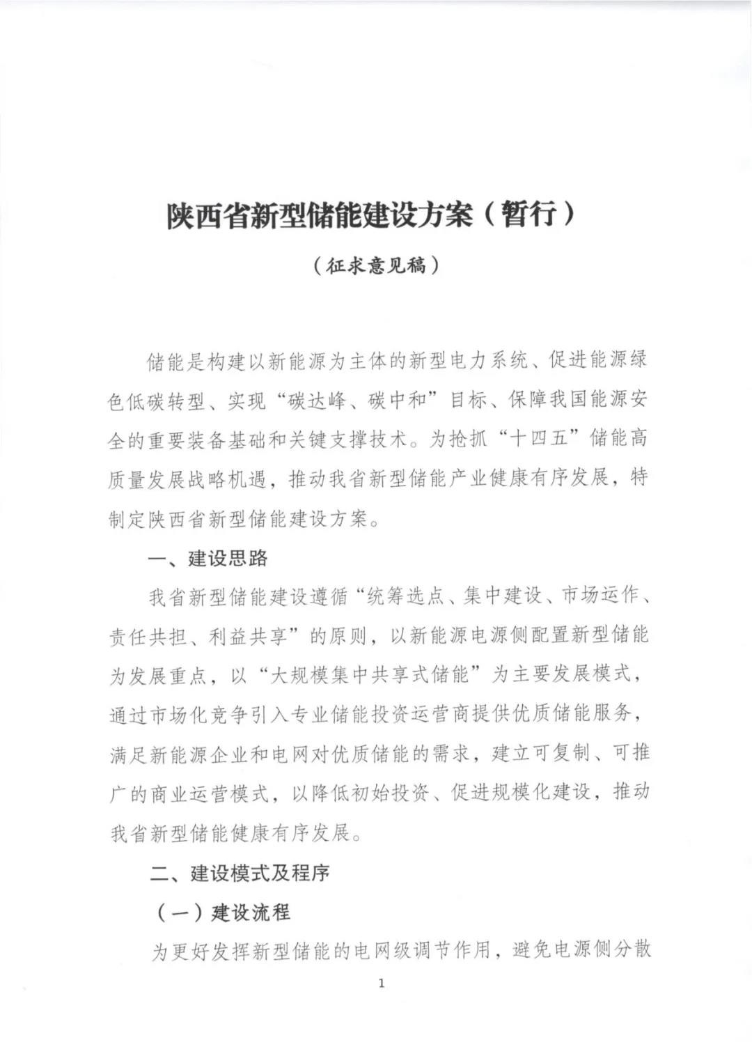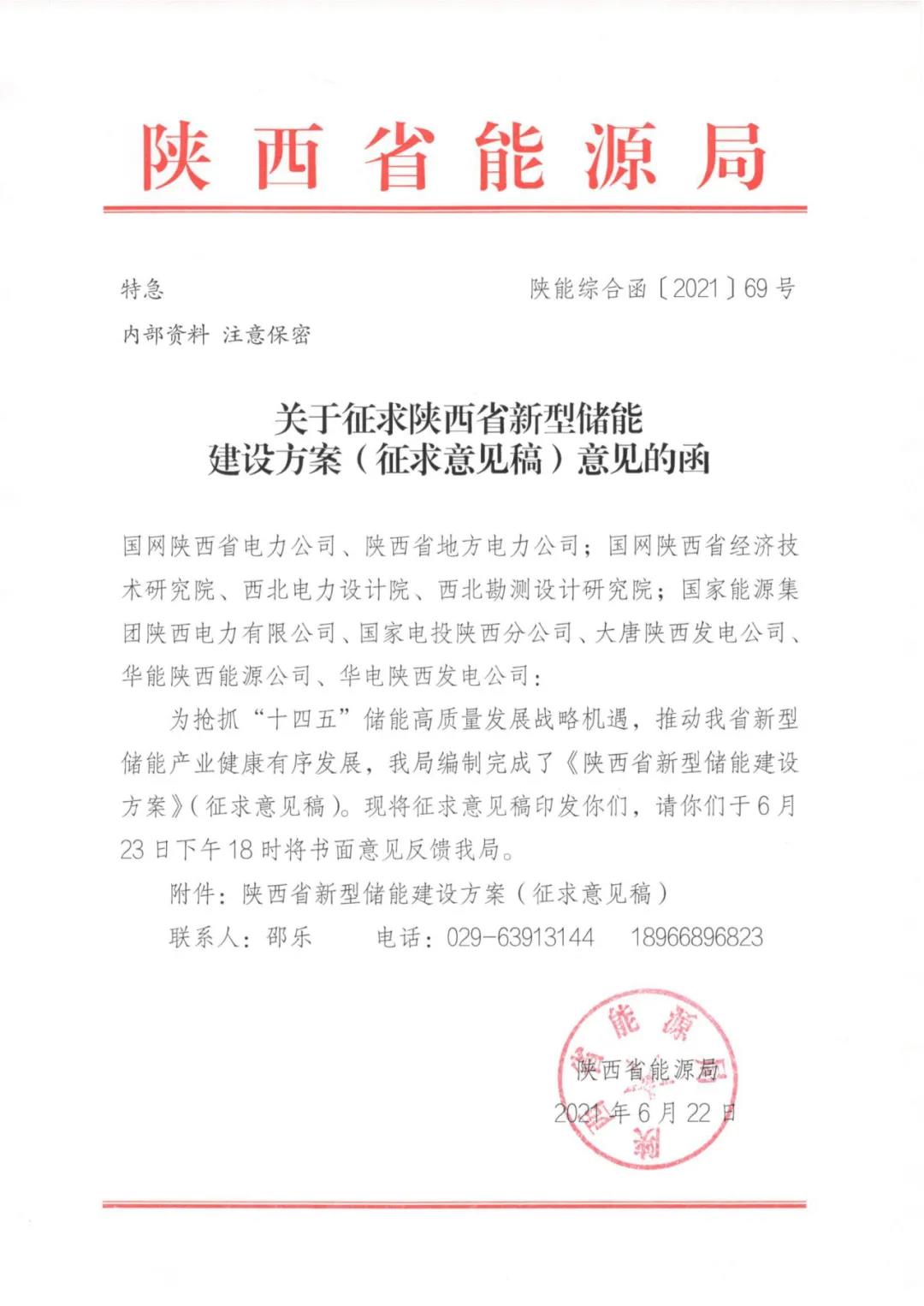日前,陕西省能源局发布《关于征求新型储能建设方案(征求意见稿)意见的函》明确以新能源电源侧配置新型储能为发展重点,以“大规模集中共享式储能”为主要发展模式,推动陕西省新型储能健康有序发展。