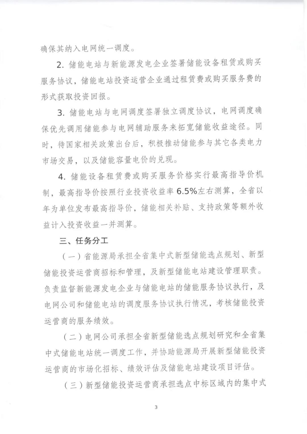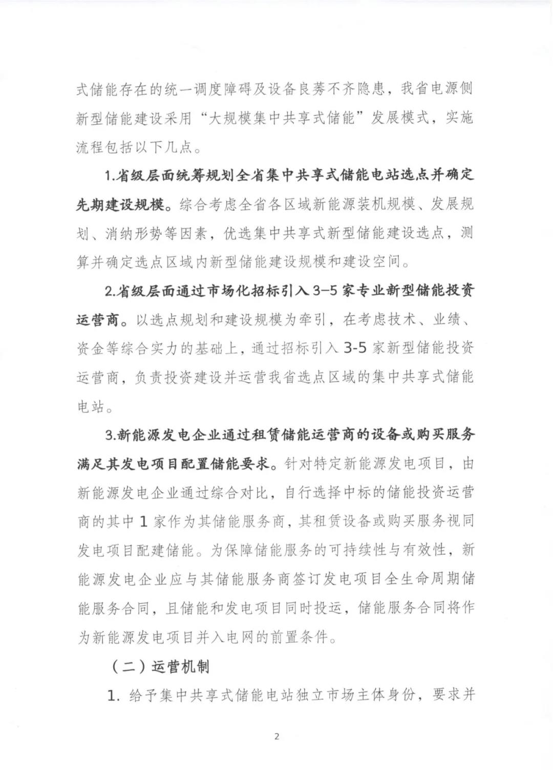 2.省级层面通过市场化招标引入3-5家专业新型储能投资运营商。以选点规划和建设规模为牵引,在考虑技术、业绩、资金等综合实力的基础上,通过招标引入3-5家新型储能投资运营商,负责投资建设并运营我省选点区域的集中共享式储能电站。