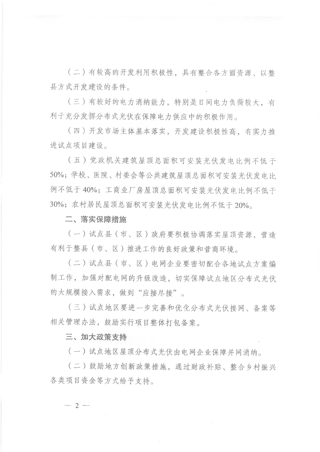 2021年6月20日,国家能源局综合司正式下发《关于报送整县(市、区)屋顶分布式光伏开发试点方案的通知》,拟在全国组织开展整县(市、 区)推进屋顶分布式光伏开发试点工作。要求: