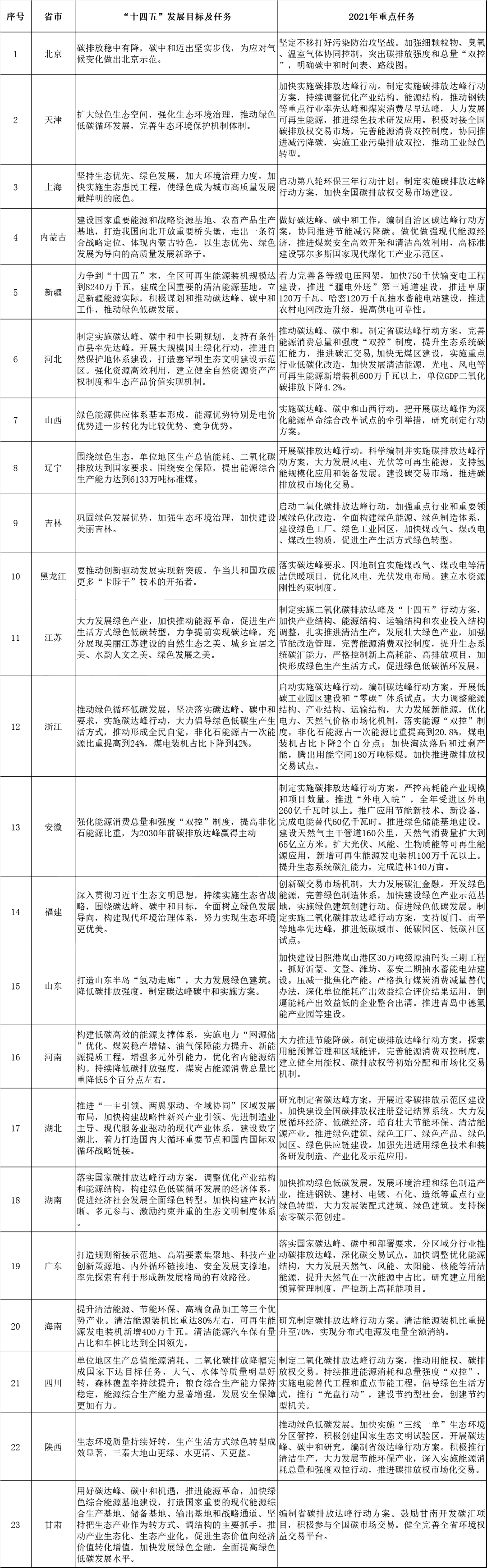 作为全球最大的发展中国家,中国要实现“双碳”目标,面临较大的实现压力。“双碳”目标提出后,势必将通过目标任务分解和细化到各地,地方政府成为能否实现目标的关键所在和必要条件。而目前我国各省亟待出台双碳目标的政策细则。