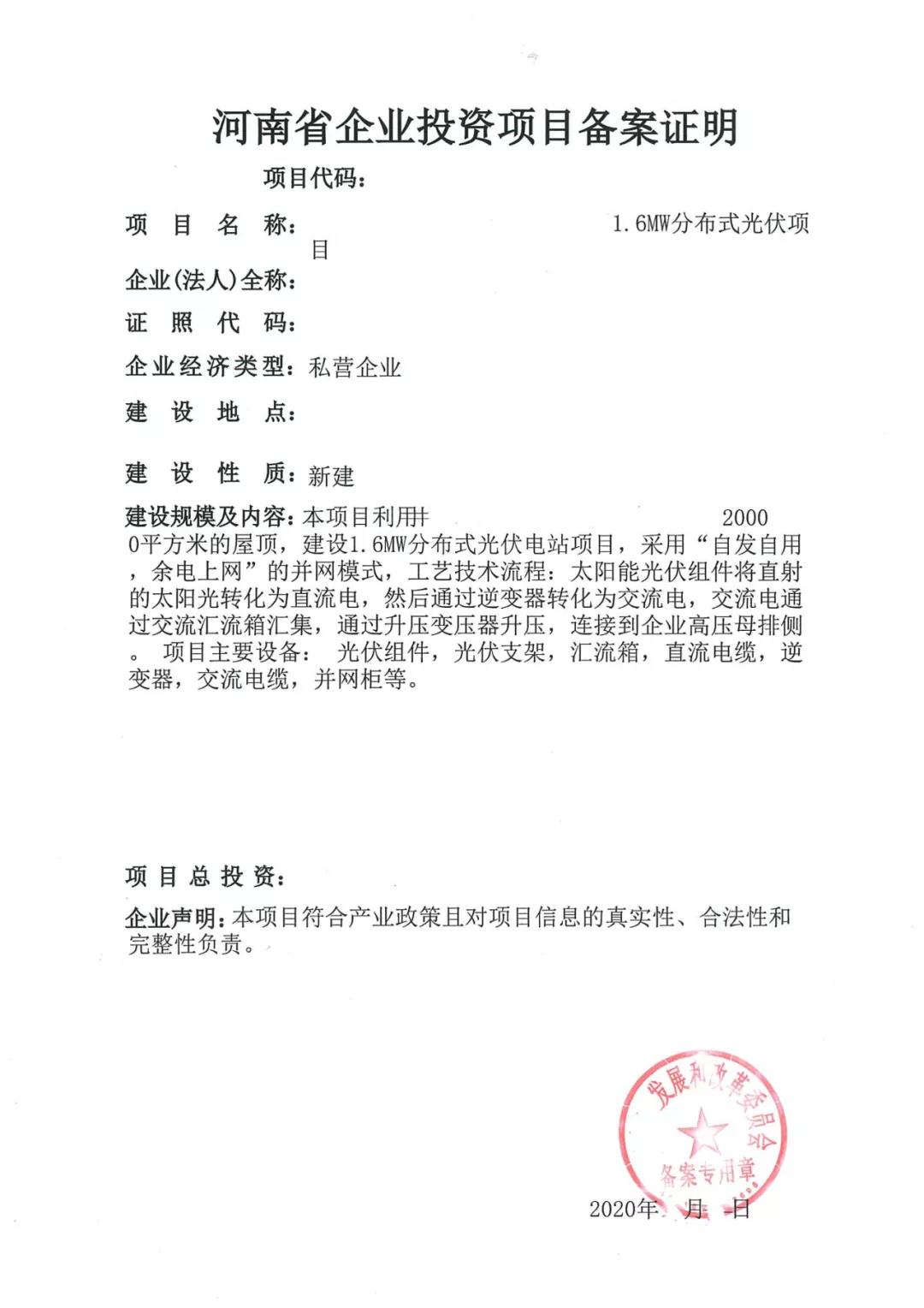 河南某分布式光伏项目总历时3个月,第1个月进行项目评估与合同签订,第2个月办理备案与接入手续,第3个月建设并网。