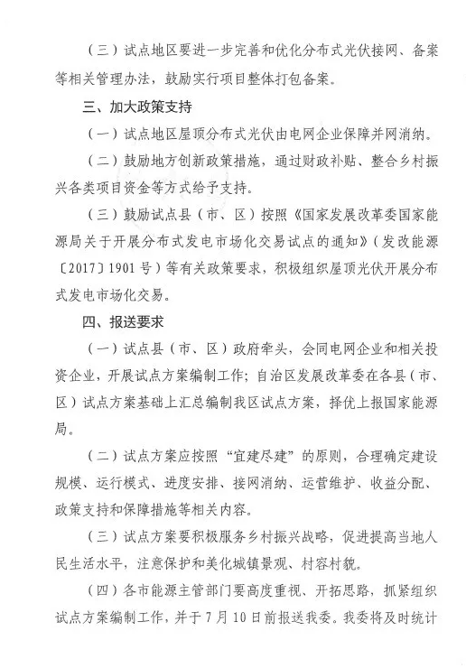 日前,广西省发改委下发《关于报送整县(市、区)屋顶分布式光伏开发试点方案的通知》。