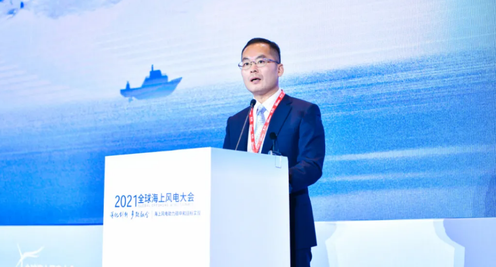 远景能源高级副总裁田庆军在大会开幕式上发表演讲。田庆军认为,中国海上风电潜力巨大,3-5年内中国所有海域基本都可以实现平价,是沿海经济发达地区实现碳中和的必然选择。