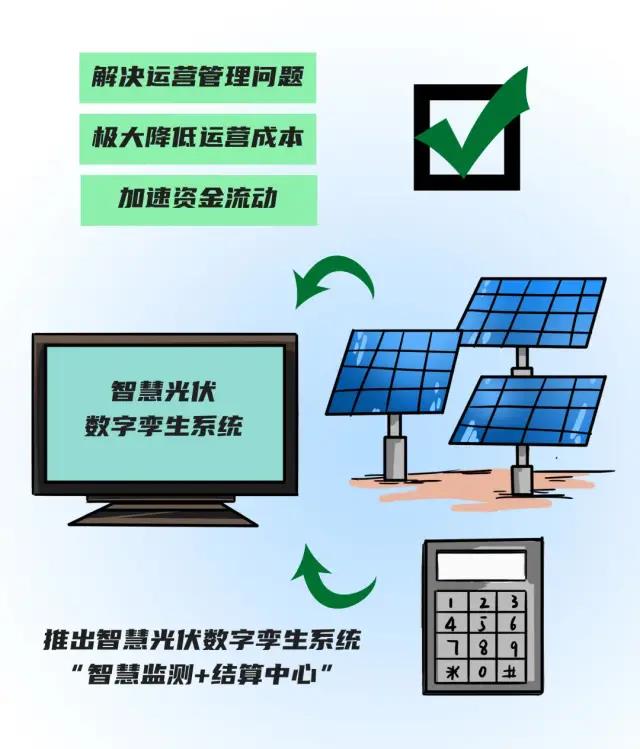 针对以上难题,国网浙江综合能源服务有限公司本着为光伏电站“精打细算”的原则,推出智慧光伏数字孪生系统——“智慧监测+结算中心”,一键解决运营管理问题、极大降低运营成本、加速资金流动,用智能手段做好各位服务商的贴心小掌柜!
