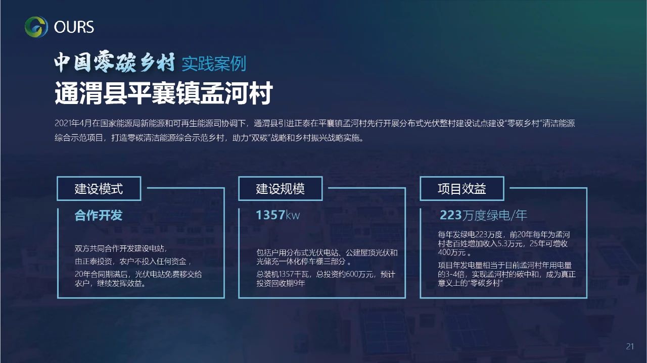 乡村作为国家重要组成部分,乡村减排、乡村碳中和将在国家实现双碳目标的进程中扮演举足轻重的角色。构建“中国零碳乡村”,是双碳目标下实现乡村振兴的必然结果,带给农村能源前所未有的发展机遇,将直接影响中国能源革命实际进程和最终成效。