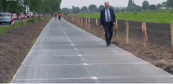 7月14日,荷兰乌得勒支省马尔滕斯代克村新揭幕了一条太阳能自行车道,将太阳能面板和混凝土车道融为一体。