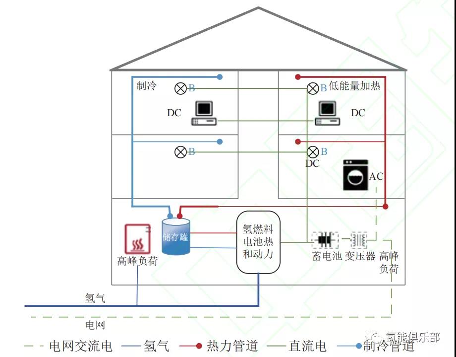该系统设计一套氢燃料电池热电联供系统,通过此设计,房屋无需外接天然气管网即可实现CHP,CHP 的电效率接近 50%,总效率高于 95%。氢燃料电池的 CHP 具有很好的发展前景,应基于我国基本国情,借鉴国外先进氢燃料电池 CHP 方 案,用于解决我国孤岛微网电力供应问题,助力氢能在我国的产业化发展,推动“十四五”电力规划的实施。