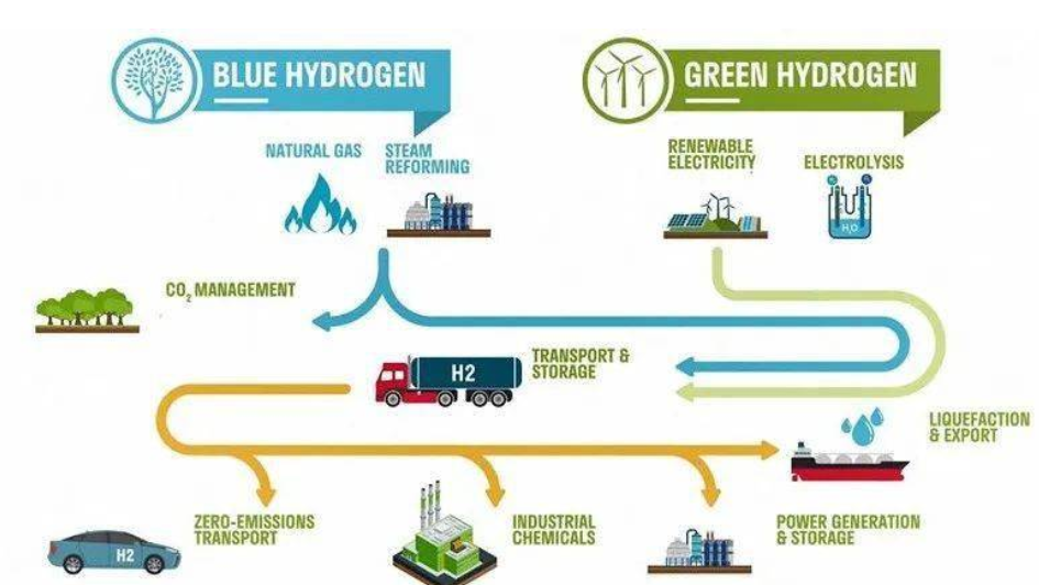 另一方面,蓝氢是将天然气分裂成氢气和二氧化碳来生产的,但二氧化碳被捕获,然后储存起来。由于温室气体被捕获,减轻了对地球的环境影响,因此蓝色氢气是对环境友好的。