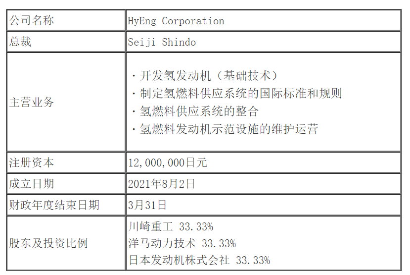 日本三大船舶发动机制造企业——川崎重工(Kawasaki Heavy Industries, Ltd.)、洋马动力技术(Yanmar Power Technology Co., Ltd.)、日本发动机株式会社(Japan Engine Corporation)签订了合资协议,宣布成立新公司——HyEng株式会社。