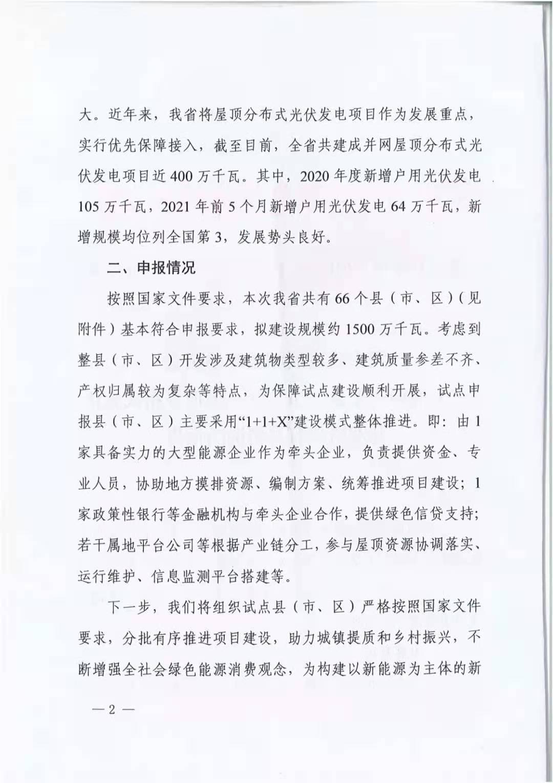 河南省发改委的文件显示,此次河南省共上报66个示范县(市、区),拟建设规模约1500万千瓦。