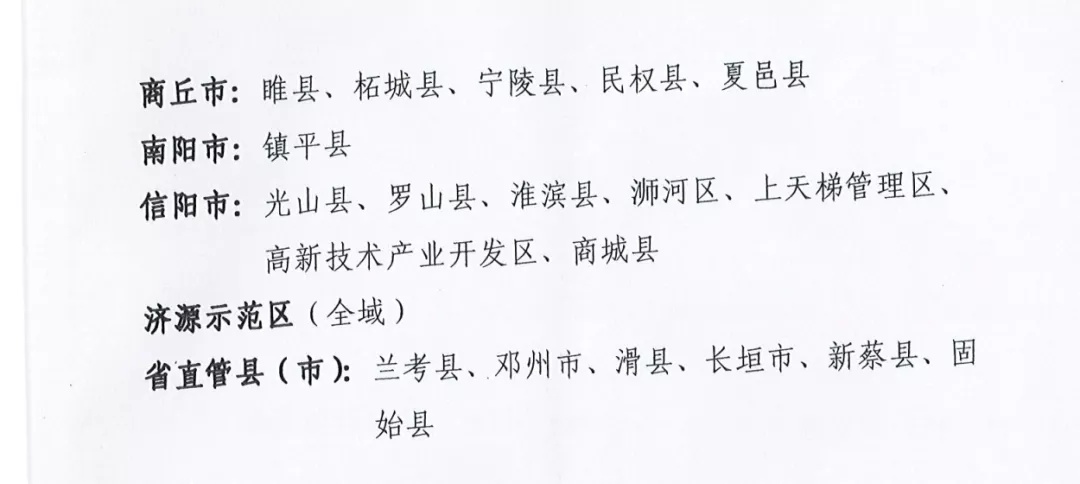 省直管县(市):兰考县、.邓州市、滑县、长垣市、新蔡县、固始县
