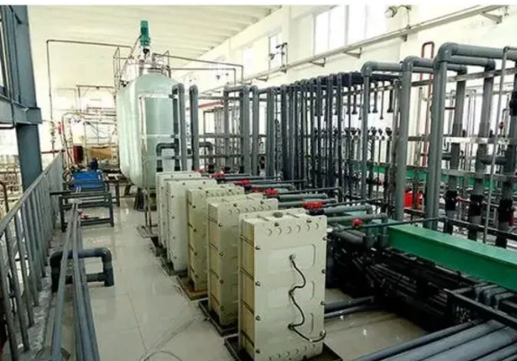 电渗析是一个电化学分离过程,是在直流电场作用下以电位差为驱动力,通过荷电膜将溶液中带电离子与不带电组分分离的过程。该分离过程是在离子交换膜中完成的。主要应用于苦咸海水脱盐、浓缩制盐,乳精、糖、酒、饮料等的脱盐净化,锅炉给水、冷却循环水软化中高价值物质回收与水的回用,废酸、废碱液净化与回收。