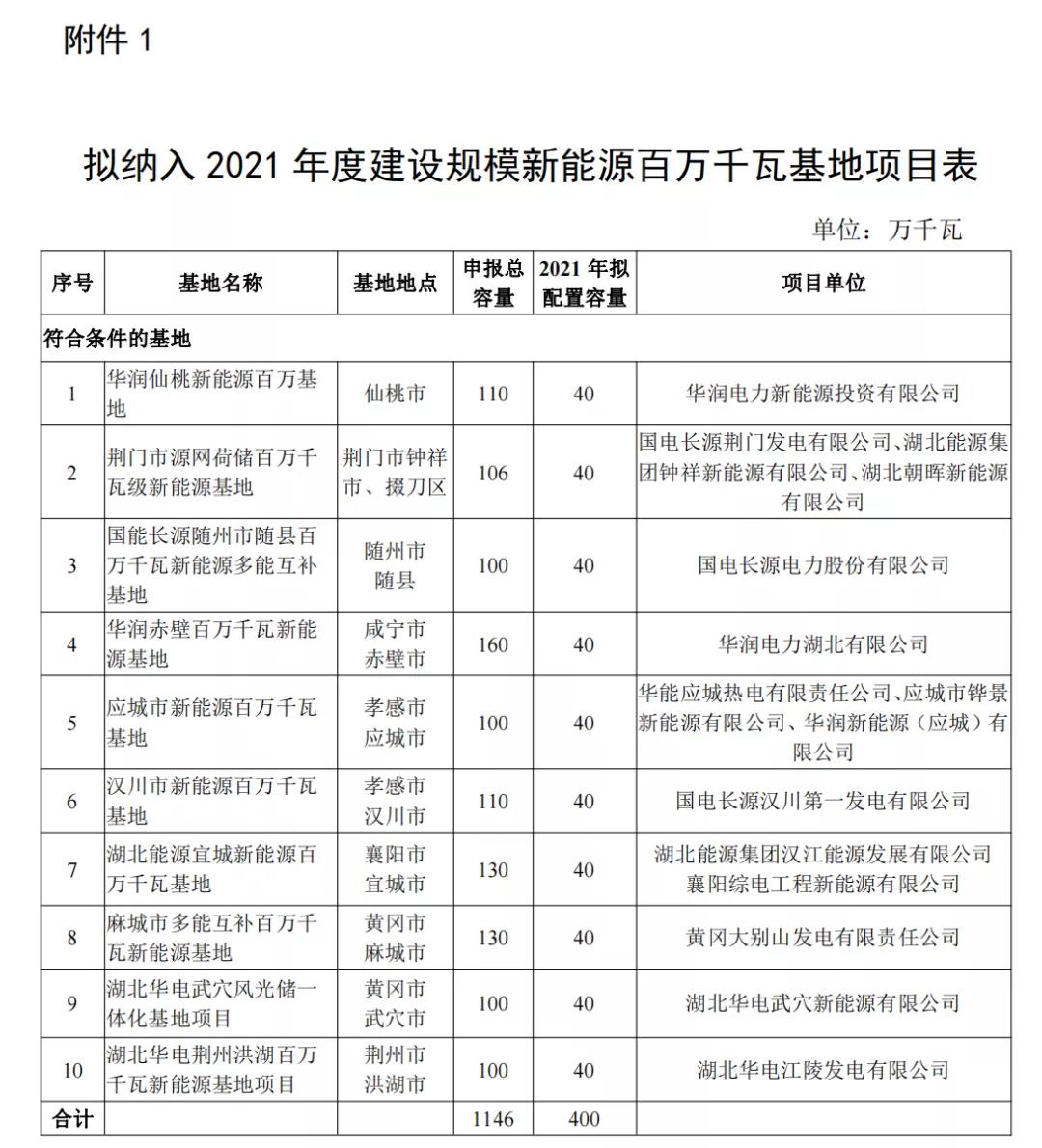 9月15日,湖北省能源局发布《关于2021年平价新能源项目审查结果的公示》。