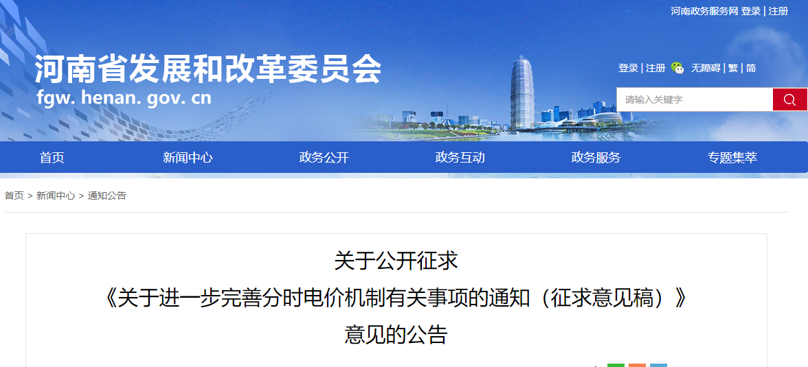 为贯彻落实党中央、国务院关于深化电价改革的决策部署,适应电力系统峰谷特性变化、新能源大规模发展、电力市场加快建设等新要求,服务以新能源为主体的新型电力系统建设,充分发挥电价信号在引导电力资源优化配置方面的作用,根,河南发改委委起草了《关于进一步完善分时电价机制有关事项的通知(征求意见稿)》,原文如下: