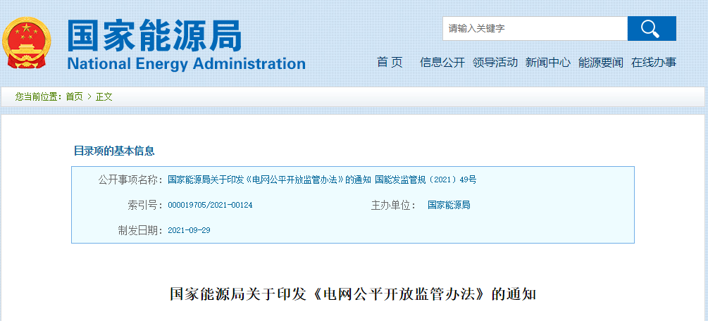 日前,国家能源局发布《电网公平开放监管办法》,称制定出台《办法》是深入推进电力市场化改革的需要。对提升电网公平开放服务水平的意愿较为迫切。原文如下: