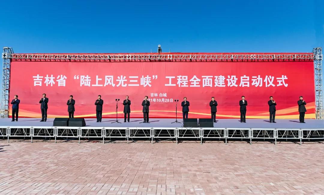 10月28日,吉林省“陆上风光三峡”工程全面建设启动仪式在白城通榆吉西基地鲁固直流140万千瓦外送项目现场举行。