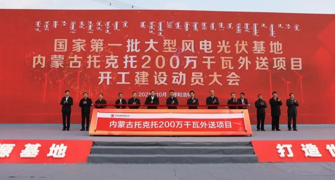 10月20日,国家第一批大型风电光伏基地内蒙古托克托200万千瓦外送项目开工仪式在内蒙古大唐国际托克托发电有限责任公司举行。