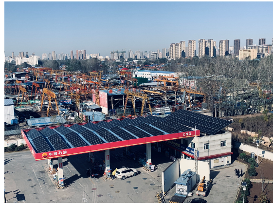 位于菏泽市淮河路的菏泽市首座光伏发电加油站,利用加油站罩棚顶、站房顶安装光伏太阳能发电系统。