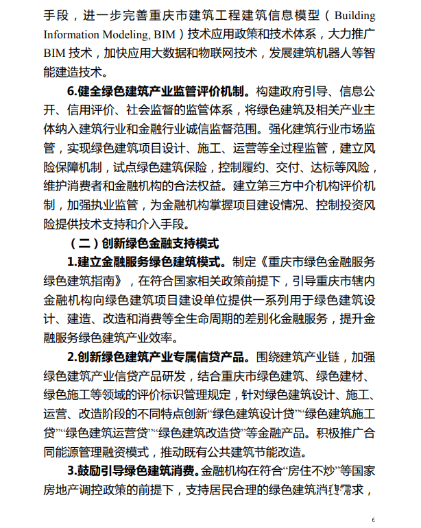 通知明确,围绕建筑产业链,加强绿色建筑产业信贷产品研发,结合重庆市绿色建筑、绿色建材、绿色施工等领域的评价标识管理规定,针对绿色建筑设计、施工、运营、改造阶段的不同特点创新“绿色建筑设计贷”“绿色建筑施工贷”“绿色建筑运营贷”“绿色建筑改造贷”等金融产品。
