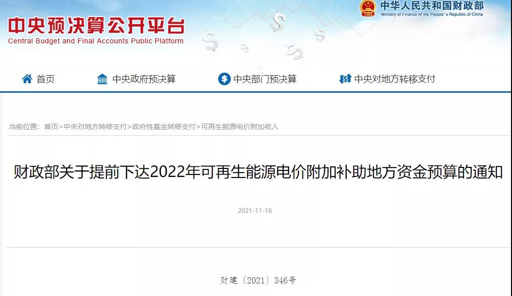 东风起!财政部提前下达2022年风电、光伏、生物质发电38.7亿补助资金预算
